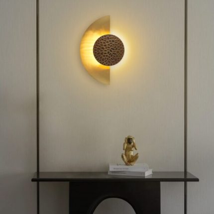 là đèn treo tường được thiết kế theo phong cách cổ điển Châu Âu với các đường nét, họa tiết tinh tế và cân đối. Đèn treo tường được chế tác bằng đồng nguyên chất, đã được xử lý mạ hóa giúp cho giữ được màu đồng nguyên bản nhưng chống được oxy hóa đồng giúp cho màu sắc của đèn luôn tươi mới, sáng bóng. Chụp đèn là vải lanh dệt thủ công, vải dày và mềm mãi, phân tán sáng đều, không chói lóa.