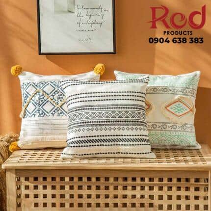được dệt bằng vảo cotton bền chắc, mềm mại, thoáng khí và thấm hút tốt. Sản phẩm có 2 dạng là áo gối và ruột gối với hoa văn áo gối hiện đại, nhiều màu sắc, trẻ trung nhưng cũng không kém phần sang trọng. Gối tựa có đến 3 kích thước cho bạn thoải mái lựa chọn, gối có thể dùng để tựa lưng hoặc làm gối kê tay đều được.