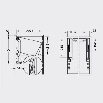 Tay nâng tủ bếp Blum hạng nhẹ HF22