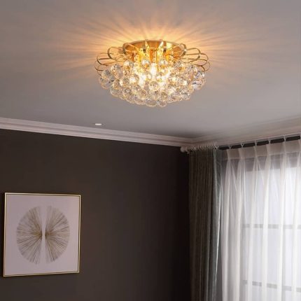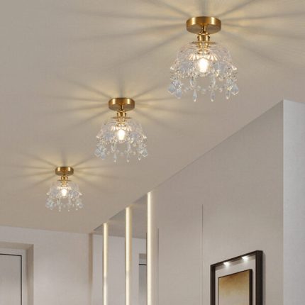 Đèn ốp trần đồng chùm pha lê rơi hiện đại HL6677