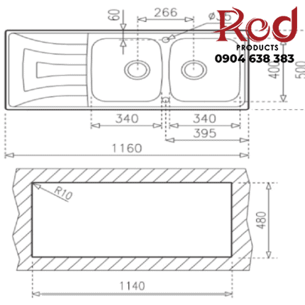 - Kích thước cắt đá: 520D x 420R mm
