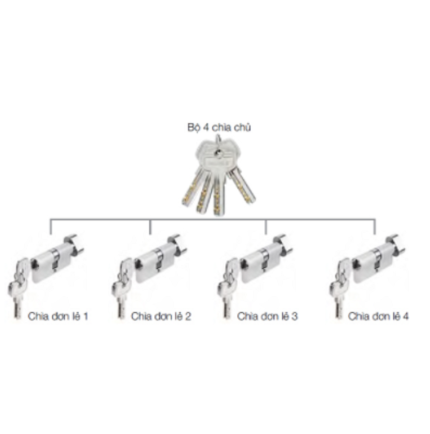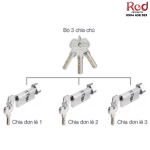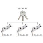 gồm 3 ruột khóa với 3 chìa khóa thường cho mỗi ruột và 3 chìa chủ mở được 3 ruột khóa.