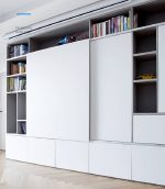 Tủ kết hợp sử dụng cửa lùa là giải pháp tiết kiệm diện tích tối đa, chúng ta có thể thay đổi cấu trúc tủ linh hoạt (Tủ TV-quần áo-tủ sách,…), phần không sử dụng được giấu sau cánh tủ, tăng tính thẩm mĩ, gọn gàng cho căn phòng. Nhưng vấn đề của cửa lùa là thường xuyên xảy ra va chạm giữa 2 cánh tủ hoặc giữa cánh và thành tủ, thấu hiểu điều đó, là giải pháp tối ưu cho vấn đề này.