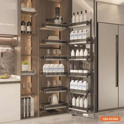 Trong một gia đình đặc biệt là người phụ nữ rất chú trọng đến bữa ăn cho gia đình mình vì thế họ mua sắm, cất trữ rất nhiều nguyên vật liệu, lương thực để đảm bảo các thành viên trong gia đình được cung cấp đầy đủ chất hoặc sẵn sàng chế biến một món ăn nào đó yêu thích. Nhưng để làm sao sắp xếp tất cả lương thực này một cách gọn gàng thì nan 6 tầng cánh rút Euro Gold-EG90640S sẽ là giải pháp hiệu quả cho bạn.