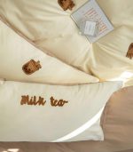 Kết cấu cotton nhẹ nhàng mềm mại luôn mang đến cảm giác chìm đắm trong giấc ngủ, giấc ngủ siêu chất lượng càng ngủ lại càng muốn ngủ. Sản phẩm gồm có chăn màu vàng thanh lịch cùng họa tiết vô cùng đáng yêu cho tín đồ mê trà sữa, Drap màu nâu nhạt dịu nhẹ. Chất vải không bị biến dạng hay phai màu sau khi giặt, nhẹ nhàng, vải thoáng khí và thân thiện với làn da.