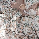 Là một bộ ga trải giường hoa siêu đẹp lấy cảm hứng từ sắc thái của công viên đầu mùa thu, những chiếc lá bắt đầu chuyển màu, một số loài hoa nở rải rác, như chần chừ, vội vàng nở vào cuối mùa. Chất vải cotton cao cấp, chịu lực tốt. Do đó, vải dệt có độ bóng riêng, mềm mại và tinh tế, mật độ cao và sẽ không bị hư hại theo thời gian.