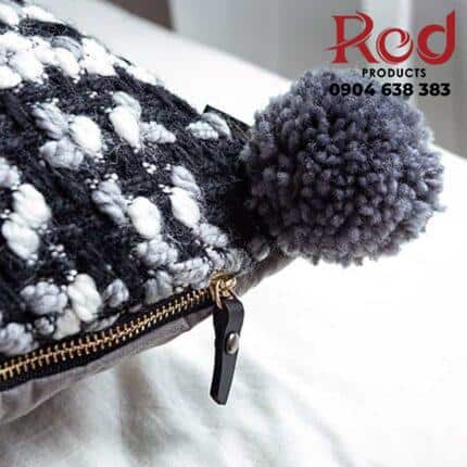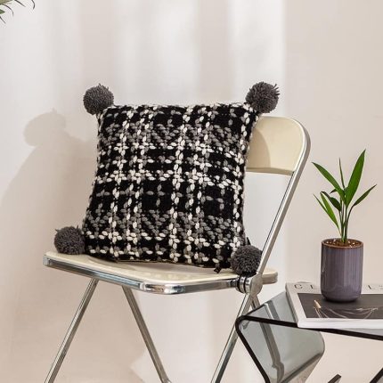 Gối tựa lưng đan caro bông dệt sợi tua rua PCH2716