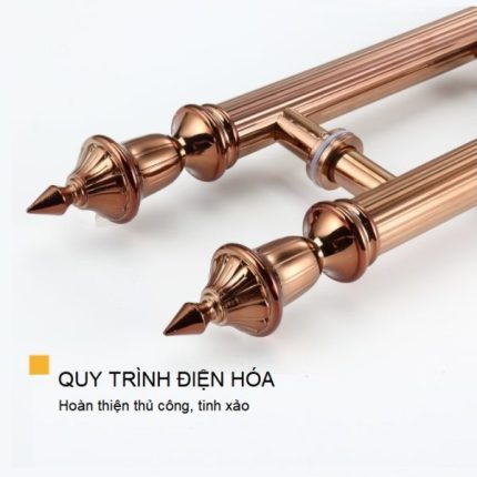 là bộ tay nắm cửa thiết kế chuyên dụng cho các nhà hàng khách sạn, biệt thự cao cấp với nhiều kích thước khác nhau phù hợp với các cánh cửa gỗ, cửa kính và cửa sắt. Tay nắm cửa được thiết kế từ vật liệu chọn lọc hợp kim nhôm đúc nguyên khối dày 12mm với các đường nét hoa văn được xử lý thủ công tinh tế, sang trọng và cao cấp. Tay nắm cửa được mạ điện hóa nhiều màu bằng công nghệ mạ tiên tiến, chống ăn mòn và oxy hóa khi sử dụng ngoài trời, giữ màu luôn tươi mới theo thời gian
