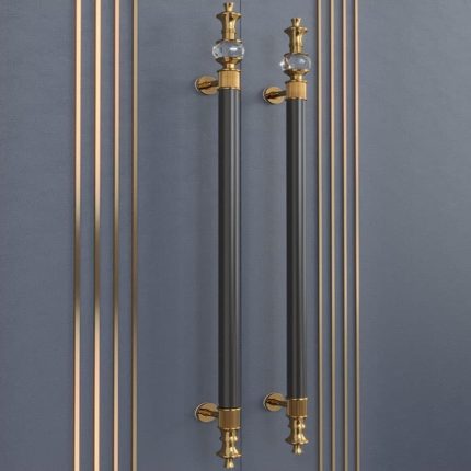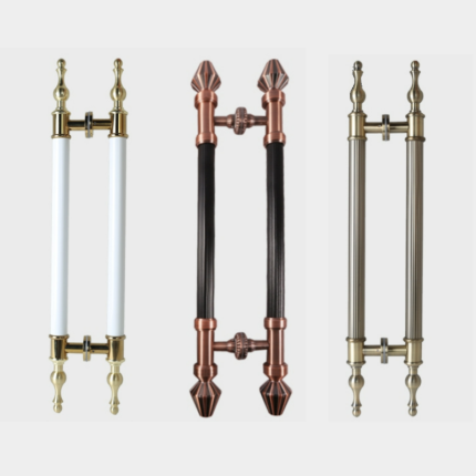 là bộ tay nắm được thiết kế hiện đại tối giản bằng chất liệu Inox dày và chắc chắn với các lựa chọn như thân bằng gỗ và bọc da tạo nên sự sang trọng lịch sự với nhiều màu sắc khác nhau. Tay nắm cửa có thể lắp đặt lên các cửa kính, cửa gỗ và cửa sắt mà không phụ thuộc vào ộ dày và đố cửa do bộ phụ kiện thiết kế có thể lắp đặt trên mọi kích thước và chất liệu