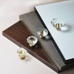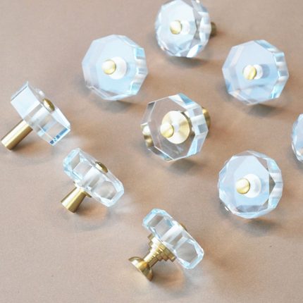là bộ núm tay nắm tủ cho ngăn kéo tủ, tủ bếp, tủ quần áo bằng pha lê cao cấp, phần chân đế làm bằng đồng nguyên chất.. Núm tay nắm tủ bằng đồng có thiết kế hình độc đáo với bằng cách sử dụng 2 loại vật liệu trên.Phần núm bằng pha lê trong suốt được hoàn thiện công nghệ cao. Phần đế bằng đồng thau bền bỉ, sáng màu. Tay núm tủ pha đế đế bằng đồng được trau chuốt đến từng chi tiết, mang đến vẻ đẹp sang trọng. Vật liệu đặc ruột cao cấp mang đến cảm giác chắc tay khi sử dụng và sự sang trọng cho tủ quần áo.