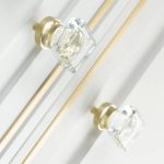 là bộ núm tay nắm tủ cho ngăn kéo tủ, tủ bếp, tủ quần áo bằng pha lê cao cấp, phần chân đế làm bằng đồng nguyên chất. Núm tay nắm tủ bằng đồng có thiết kế hình độc đáo với bằng cách sử dụng 2 loại vật liệu trên. Phần núm bằng pha lê trong suốt được hoàn thiện công nghệ cao. Phần đế bằng đồng thau bền bỉ, sáng màu. Tay núm tủ pha đế đế bằng đồng được trau chuốt đến từng chi tiết, mang đến vẻ đẹp sang trọng. Vật liệu đặc ruột cao cấp mang đến cảm giác chắc tay khi sử dụng và sự sang trọng cho tủ quần áo. Sản phẩm được mạ công nghệ cao, không bị oxi hoá. Sản phẩm có 2 mẫu cầu và khối vuông