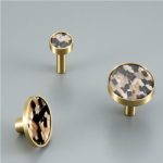 là bộ núm tay nắm tủ được chế tác bằng đồng nguyên chất cao cấp và khảm trai thủ công. Núm tay nắm ngăn kéo được thiết kế theo phong cách hiện đại tối giản và được sản xuất với nhiều qui trình khác nhau từ vật liệu đồng, đánh bóng và tráng lớp men chống oxy hóa đồng và giữ màu đẹp suốt thời gian sử dụng