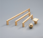 là bộ tay nắm tủ và núm (knob) tay nắm tủ màu vàng chải (Gold Brushed) được thiết kế trên ý tưởng hiện đại tối giản với các đường nét hoàn thiện tinh tế, mượt mà trên chất liệu hợp kim kẽm cao cấp. Tay nắm được hoàn thiện với lớp ngoài mạ đồng vàng mờ