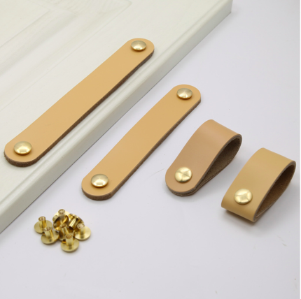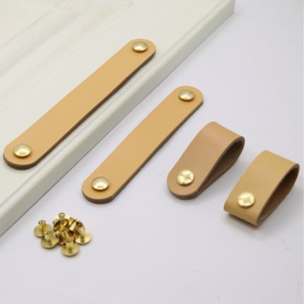 Tay nắm tủ bằng da bò thật màu vàng DH8001C