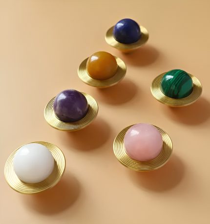 Tay nắm đồng thau khảm đá thạch anh BIE045