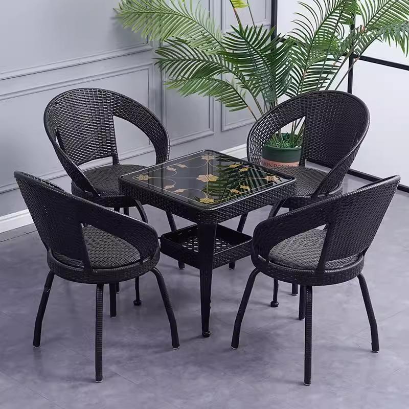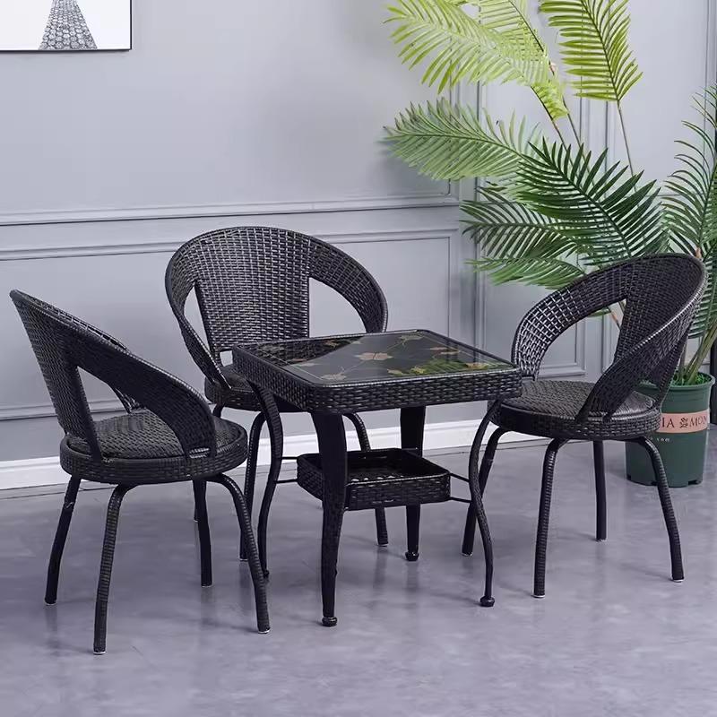 được làm dệt mây PE hoàn toàn thủ công, mỗi bộ phận đều được dệt bằng tay, linh hoạt, không độc hại và không gây ô nhiễm, màu sắc ổn định và không dễ bị ăn mòn, tạo cảm giác mịn màng và không có gờ. Ống thép chắc chắn được gia cố bền, mặt dưới khung ghế được trang bị miếng đệm cao su chống trượt, có tác dụng chống trơn trượt, không gây ồn và chống trầy xước sàn nhà.